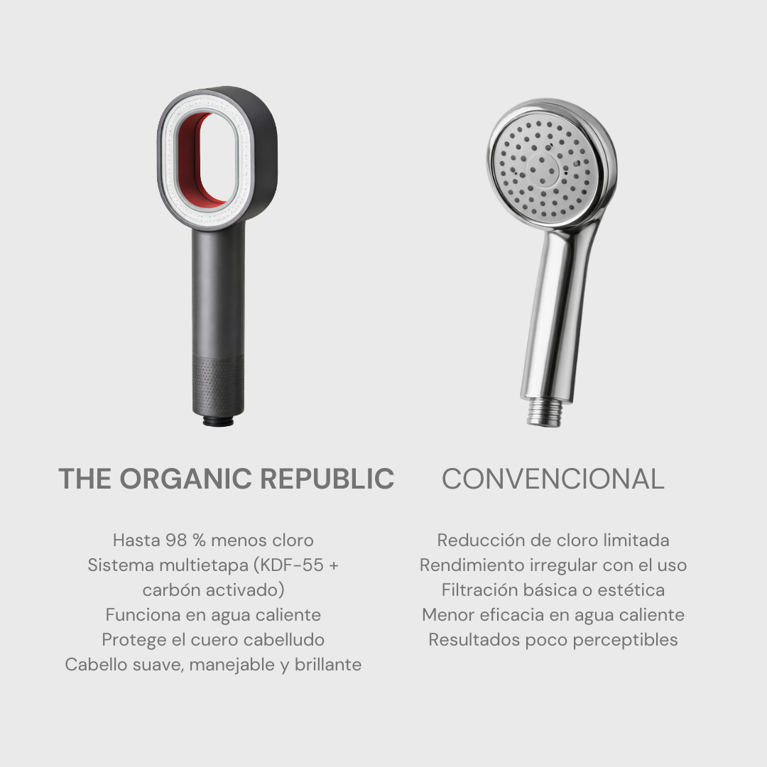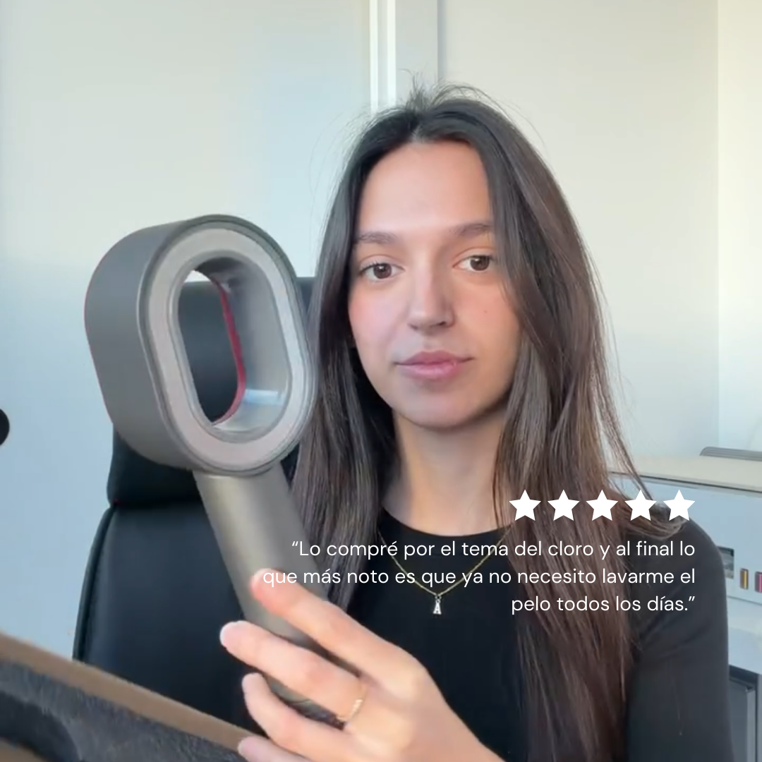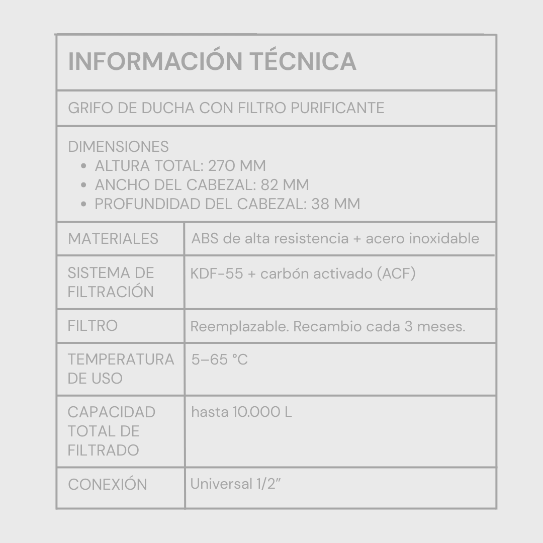- Porque mejora la calidad del agua que entra en contacto con tu cuero cabelludo y tu cabello desde la primera ducha.